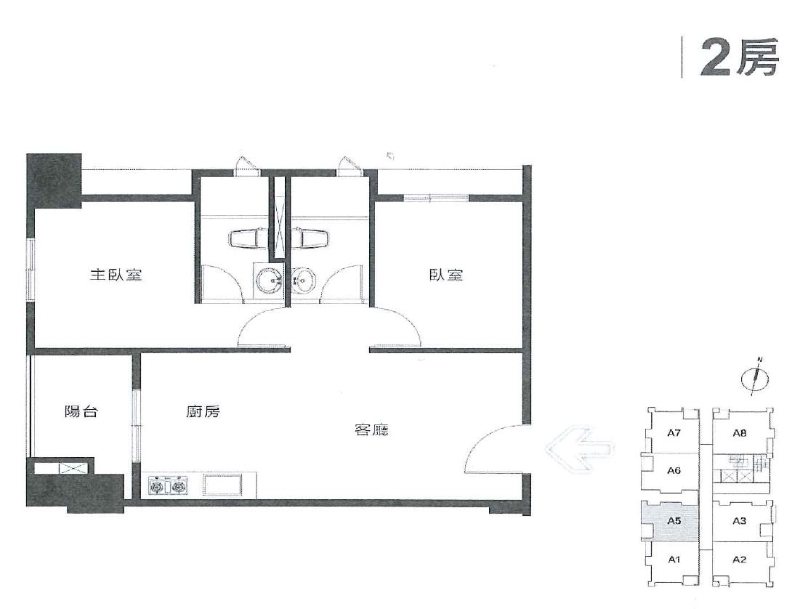 2房/ 2廳/ 2衛/ 1陽台