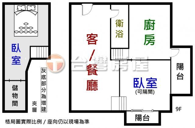 2房/ 2廳/ 1衛/ 2陽台