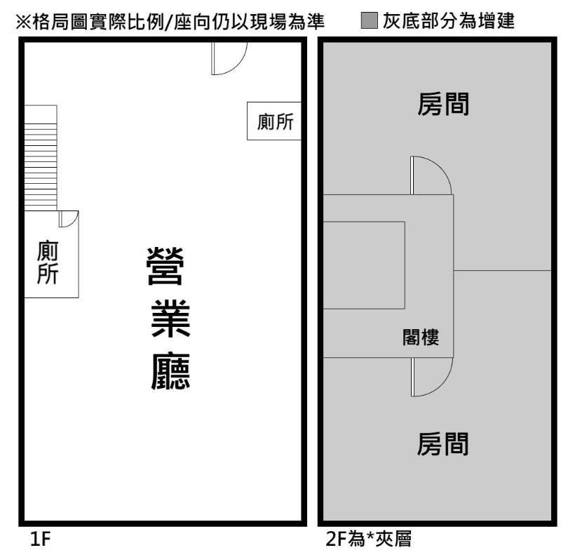2.二樓施作夾層,有2間房間。