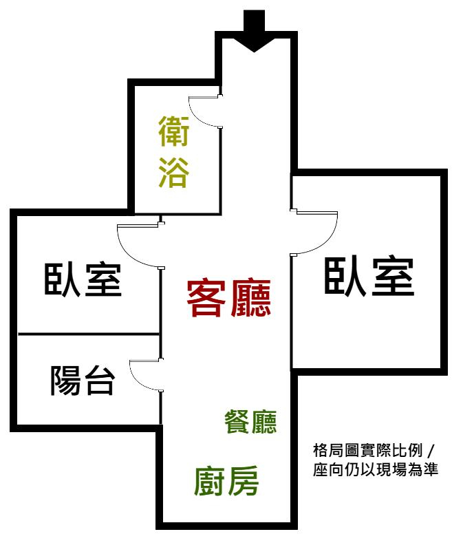 2房/ 1廳/ 1衛/ 1陽台